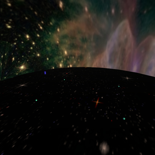 青いボールに乗ってから周りをタッチしてダイアログを出して 「Hole On-Off」ボタンを押して下さい。 下のように床がなくなり宇宙が更に広がります。 |